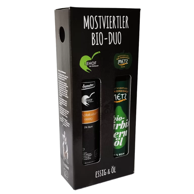 Der Inhalt dieser Box umfasst köstlichen Speckbirnenmost, geröstete und gesalzene Bio Kürbiskerne, verführerische Edelbitterschokolade mit Kernfüllung, hochwertiges Kürbiskernöl und herzhaften Speck von Bio Landl – Familie Land. Abgerundet wird diese Auswahl durch den feinen Apfelbrand von Mostheuriger Schoder. Ein Geschenk, das Gaumenfreuden verspricht und die Sinne verwöhnt.